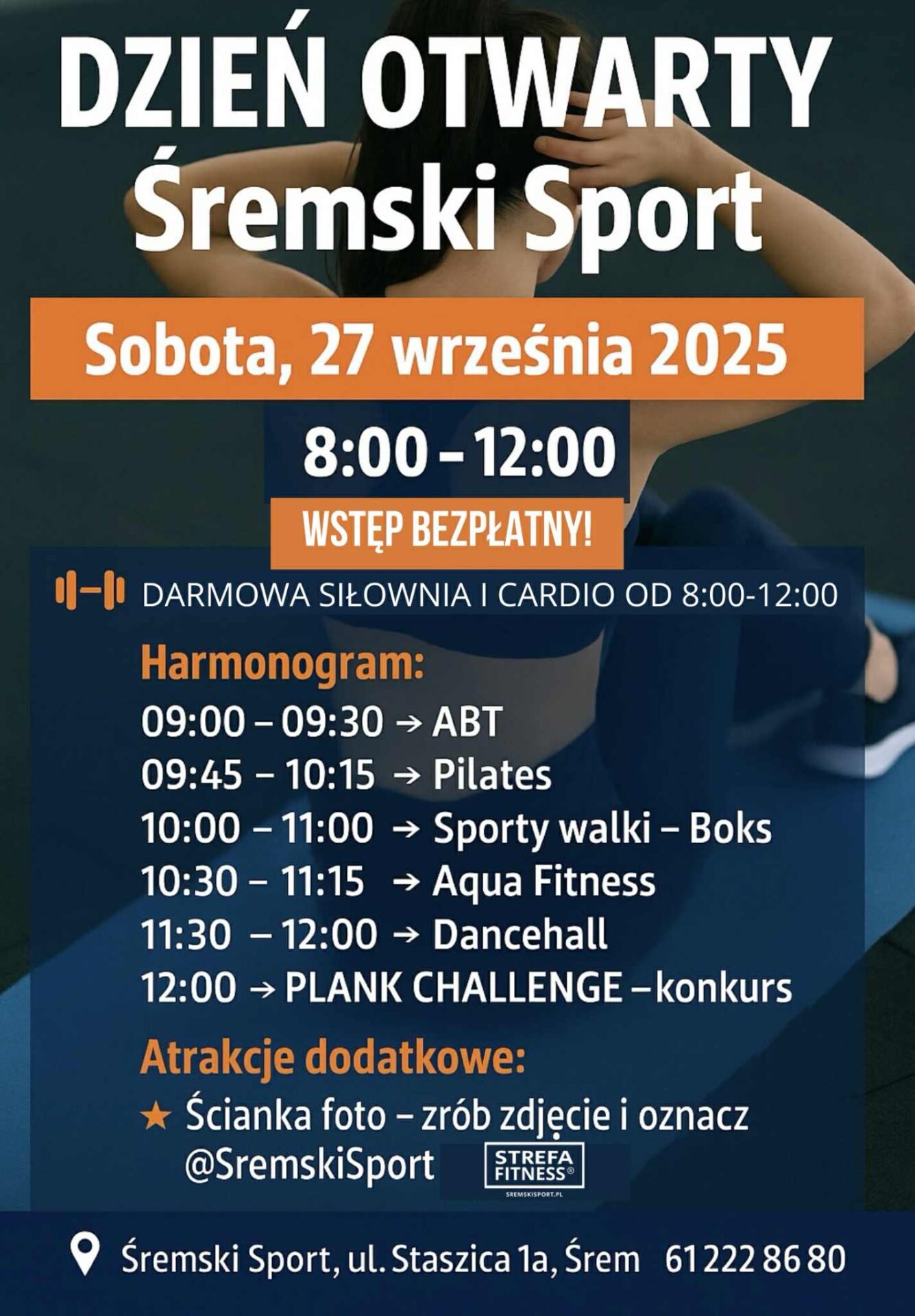 Już w sobotę,📅27 września 2025 roku, w godzinach⏰8:00–12:00 zapraszamy wszystkich mieszkańców Śremu i okolic na wyjątkowe wydarzenie – Dzień Otwarty w Śremskim Sporcie.