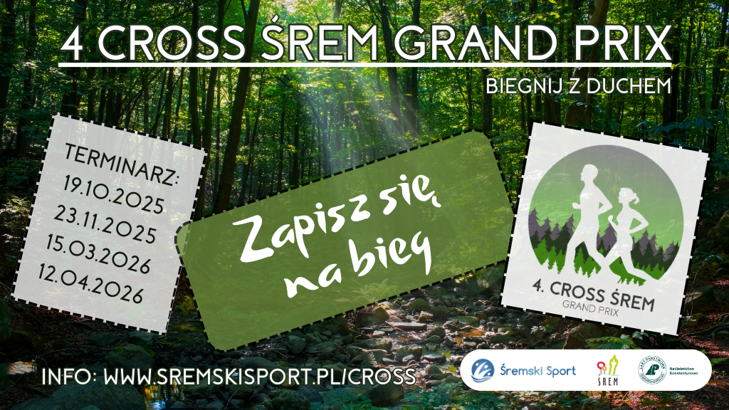Za nami pierwszy bieg cyklu 4. Cross Śrem Grand Prix. 19 października w samo południe na mecie stanęła blisko setka uczestników. Trasa jak zwykle nie zawiodła – trochę podbiegów, trochę zbiegów i mnóstwo ducha rywalizacji Gratulacje dla najlepszych zawodników OPEN: KOBIETY: 1 miejsce – Jagoda Musielak 2 miejsce – Aneta Machajewska 3 miejsce –[…]